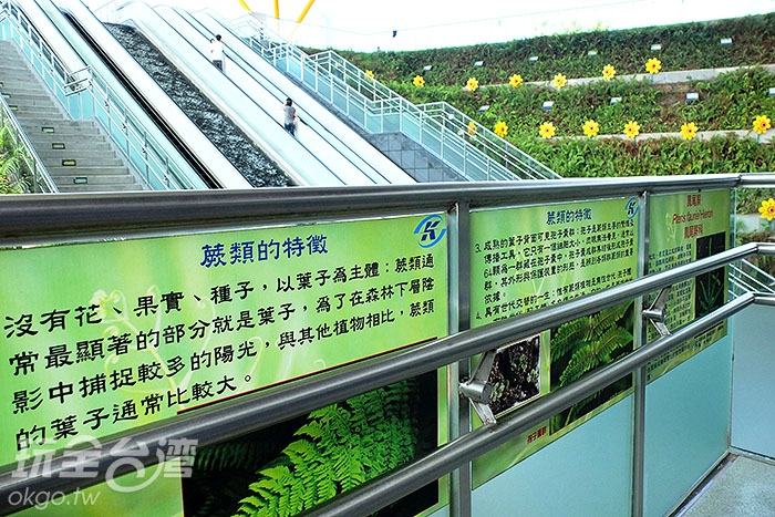 圖說:在階梯兩旁可見有關蕨類生態的知識與介紹,除了一睹中央公園捷運站的風采還能兼具學習性質喔。/玩全台灣旅遊網特約記者阿辰攝