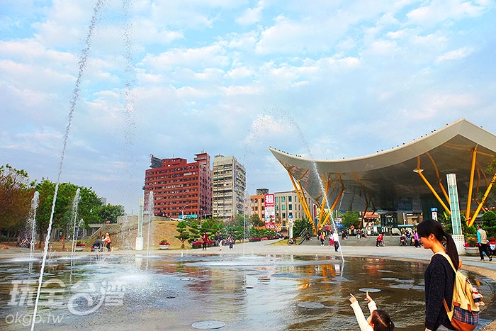圖說:出口廣場上有大型的噴水池,提供戲水的樂趣。/玩全台灣旅遊網特約記者阿辰攝
