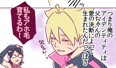 博人:「也就是說,我這身分認同般的呆毛就是我父親的愛的傑作。」