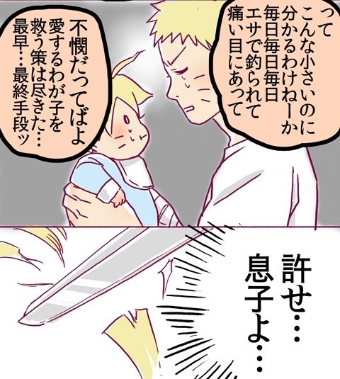 初為人父的鳴人看著每天拔著自己呆毛的兒子,每天都被博人蠢哭(?),講也講不聽,為了博人好,鳴人終於下了一個勇敢的決定:「原諒我吧!兒子!」