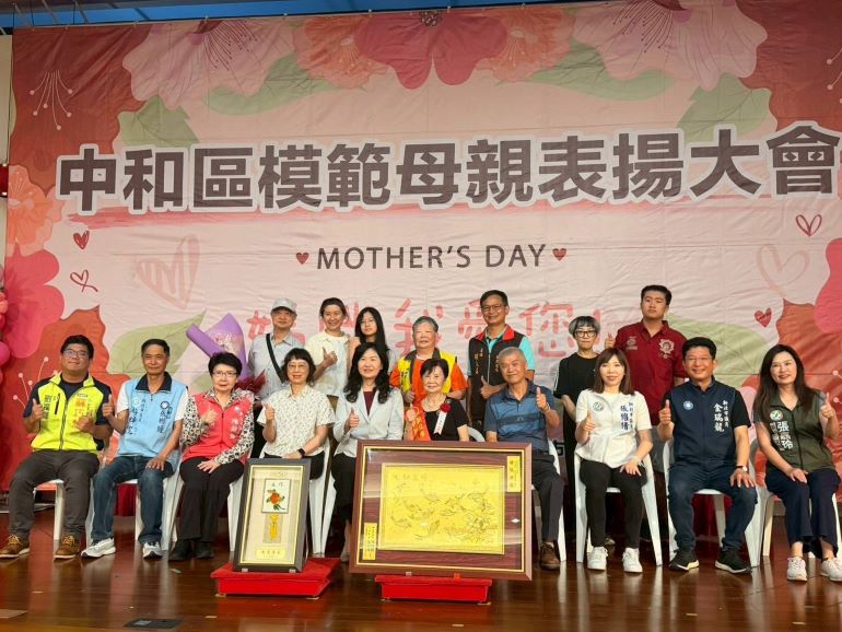 【記者葉柏成/新北報導】新北市中和區公所為迎接母親節,向辛勞付出的母親們表達最高敬意,今〈26〉日下午在慈濟雙和靜思堂舉辦「115年度新北市中和區模範母親表揚大會」,共表揚34位模範母親。活動由區長楊薏霖代表市長侯友宜頒贈獎牌,並透過溫馨的奉茶孝親儀式,讓子女以一杯「感恩的茶」向母親致意,現