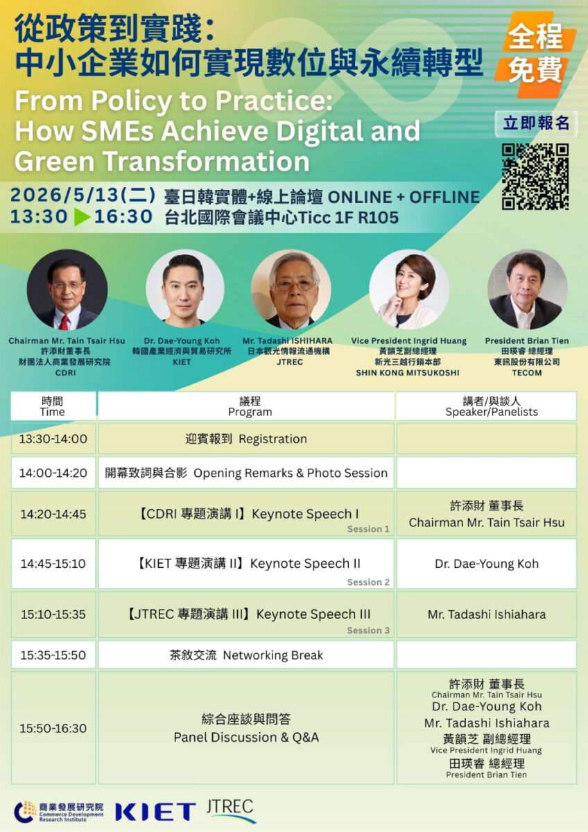 雙軸轉型定勝負!商研院攜手日、韓專家 5/13盛大開講