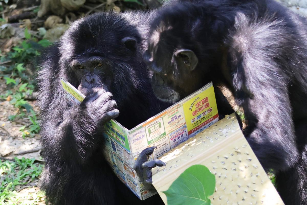 【記者王苡蘋/高雄報導】響應4月23日「世界閱讀日(WorldBookandCopyrightDay)」,壽山動物園再度發揮創意,攜手園區志工為黑猩猩打造獨特的「藏食瓦楞紙書」,讓黑猩猩玩味品讀。觀光局長高閔琳表示,特製的「藏食瓦楞紙書」以回收紙箱製成,書頁之間巧妙藏入黑猩猩