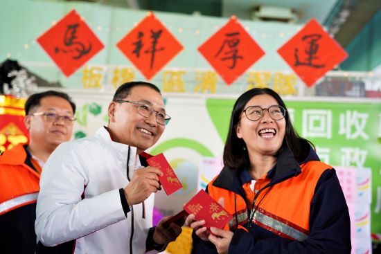 《圖說》侯友宜市長致贈象徵「馬上賺錢」10元福袋。〈環保局提供〉【記者葉柏成/新北報導】侯友宜市長今(26)日前往板橋區清潔隊慰勉第一線同仁,親自致贈象徵「馬上賺錢」的10元福袋與「大吉大利」橘子,向辛勤付出的清潔隊員賀年致意,感謝他們在年節期間堅守崗位,讓市民
