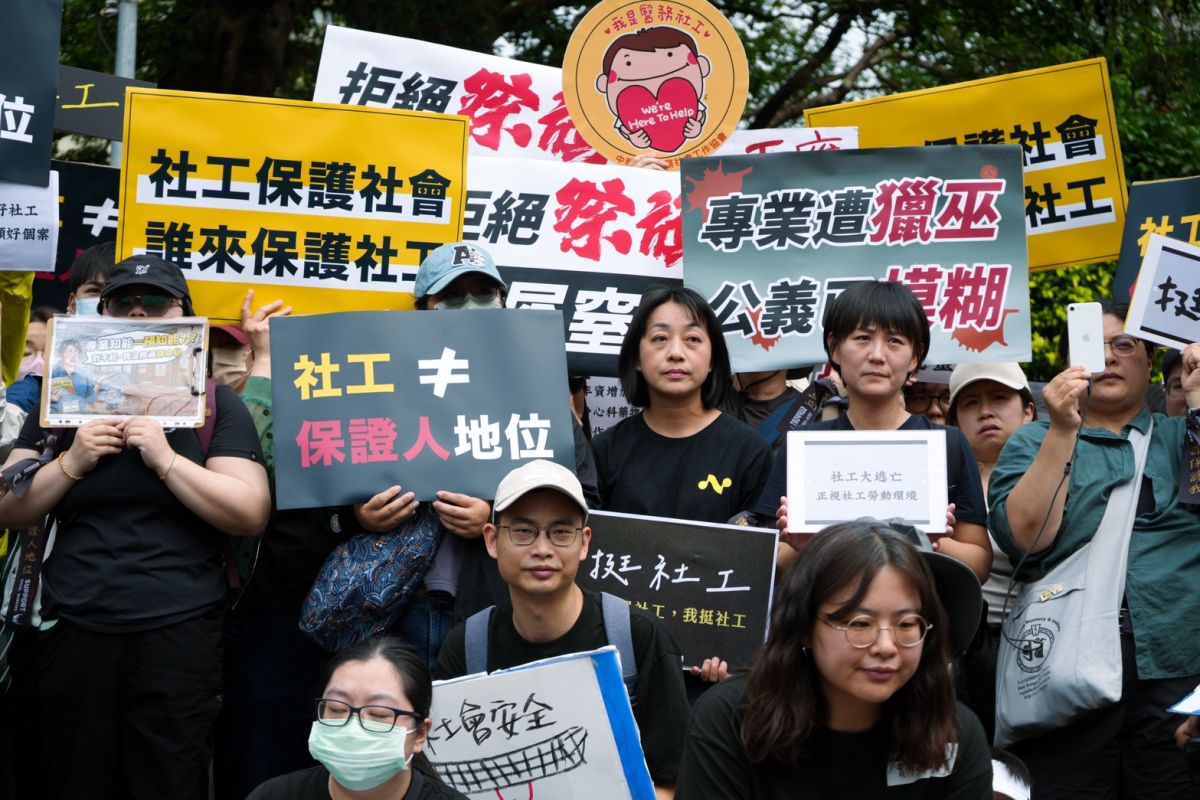 (記者陳志仁/台北報導)台北市社工職業工會22日號召37團體赴行政院抗議,數百名社工頂著烈日上街,時代力量黨主席王婉諭到場聲援,痛批政府長期失職。圖/王婉諭批評,當無辜孩童不幸喪命、基層社工卻遭判刑時,真正應負最大責任的國家卻選擇迴避。(時代力量提供)王婉諭表示,這是她首次看到如此大規模的社工集