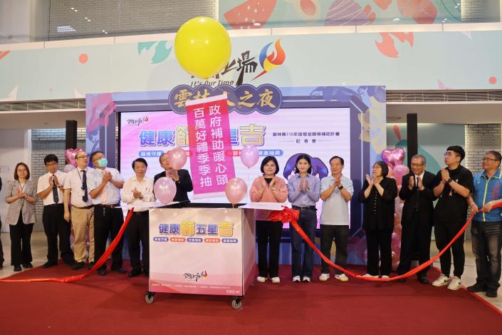 記者林詩涵/雲林報導雲林縣政府祭出「健康篩五星吉」癌症篩檢抽獎及補助計畫/雲縣府提供為鼓勵民眾參與健康篩檢,雲林縣政府祭出「健康篩五星吉」癌症篩檢抽獎及補助計畫,今(24)日縣長張麗善、副縣長陳璧君、衛生局長曾春美與縣內各大醫院領導人一同為「健康篩五星吉」計畫啟動。張麗善表示,為守護自身健康,鄉親可