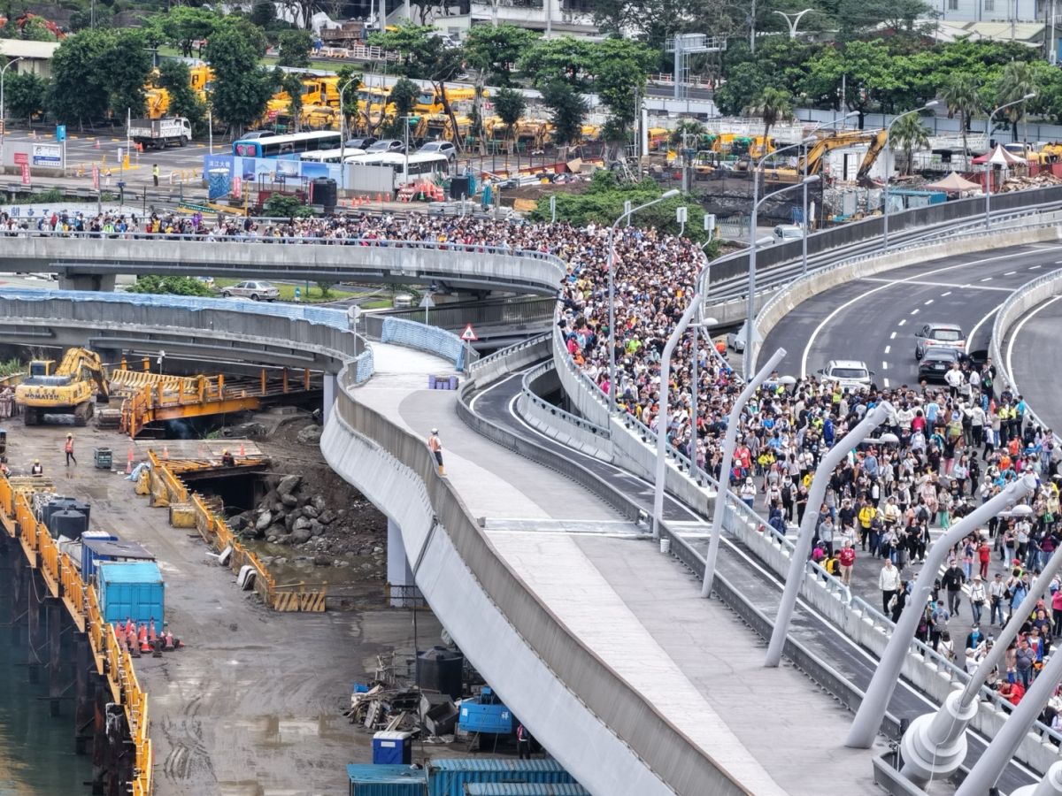 【記者葉柏成/新北報導】新北市政府今(25)日舉辦「好朋友來瞧橋-淡江大橋健行活動」,吸引超過十萬人次湧入淡水地區,寫下歷年來規模最大的橋梁開放健行紀錄。活動一早即在漁人碼頭廣場登場,現場人潮擠得水洩不通,隨著市長侯友宜鳴槍起走,上萬名民眾同步邁開步伐,首度踏上尚未通車的淡江大橋,以雙腳見證