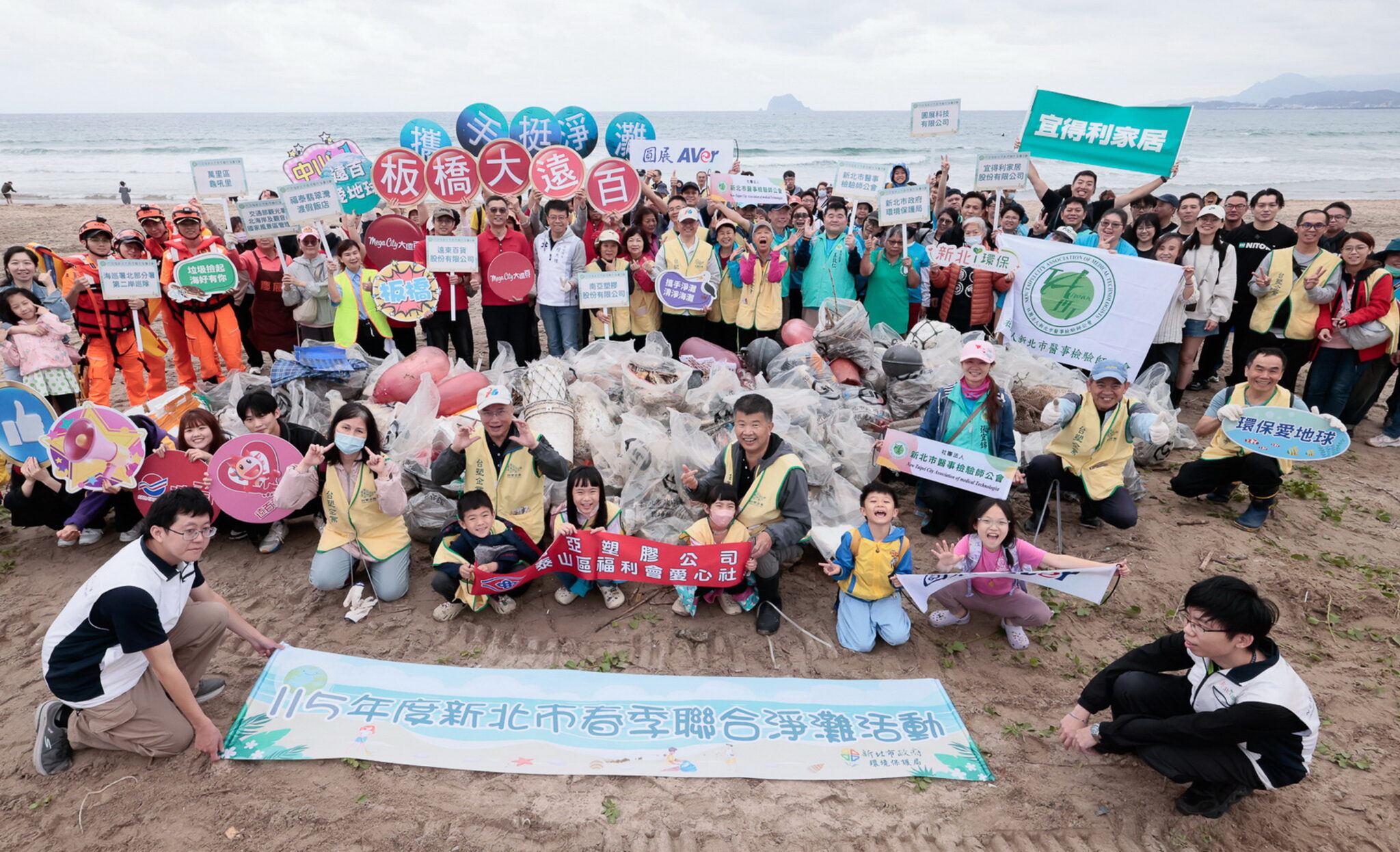 【記者葉柏成/新北報導】新北市環保局今〈25〉日在萬里區翡翠灣辦理「115年度春季聯合淨灘及淨溪活動」,串聯轄內海岸與18段河段,號召在地鄉親、機關學校、企業、民間團體及河川巡守隊共同展開清理行動。其中,台塑企業南亞塑膠公司45位志工,在魏水文資深協理帶領下,老少志工全力投入凈灘,