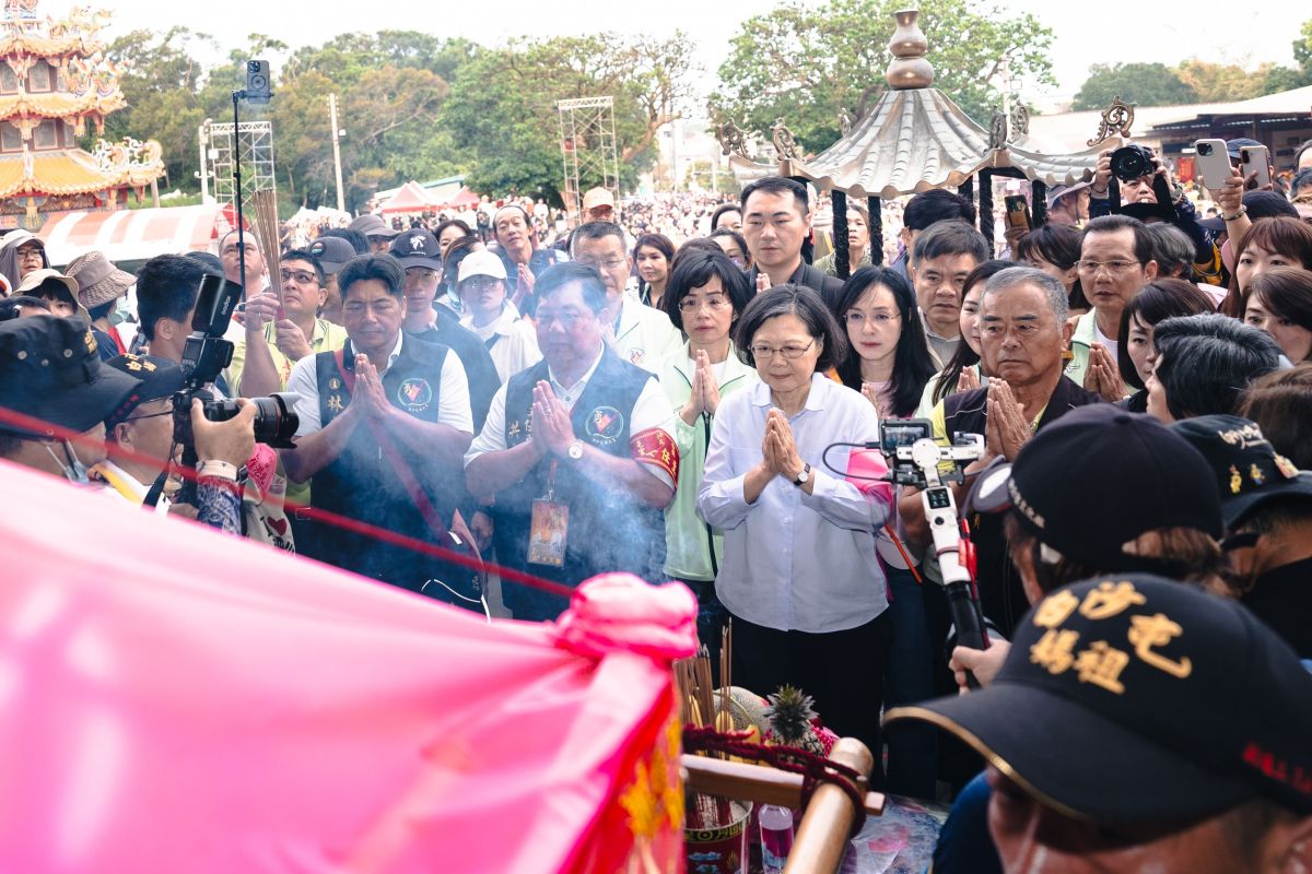 白沙屯拱天宮媽祖北港朝天宮進香活動進入第8天,回程途中於今日(20日)上午進行換轎儀式,前總統蔡英文率民進黨多名民意代表現身參與。蔡英文於上午7時許在通霄鎮通灣里慈后宮祭拜媽祖後,隨即徒步跟隨媽祖神轎,沿途不斷有支持者高聲致意,場面熱烈。前總統蔡英文今早(20日)現身跟隨白沙屯媽祖徒步進香。(中天新