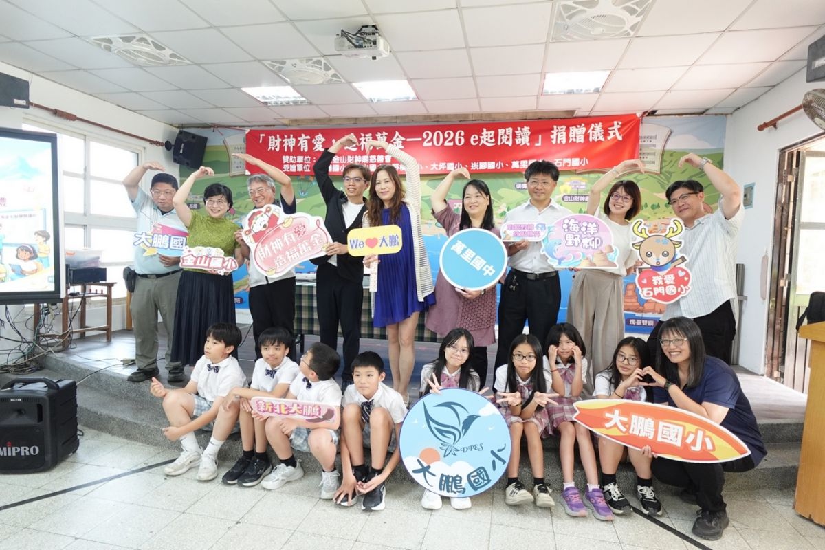 (記者陳志仁/新北報導)為縮短城鄉教育資源落差,推動數位與閱讀教育並進,新北市今(23)日世界閱讀日於萬里區大鵬國小舉辦「財神有愛,造福萬金石—2026e起閱讀」捐贈儀式;由台灣金山財神廟慈善會捐助70萬元,協助萬里、金山及石門地區學校建置AI智慧閱讀系統。圖/新北市今(23)日世界閱讀日於萬里