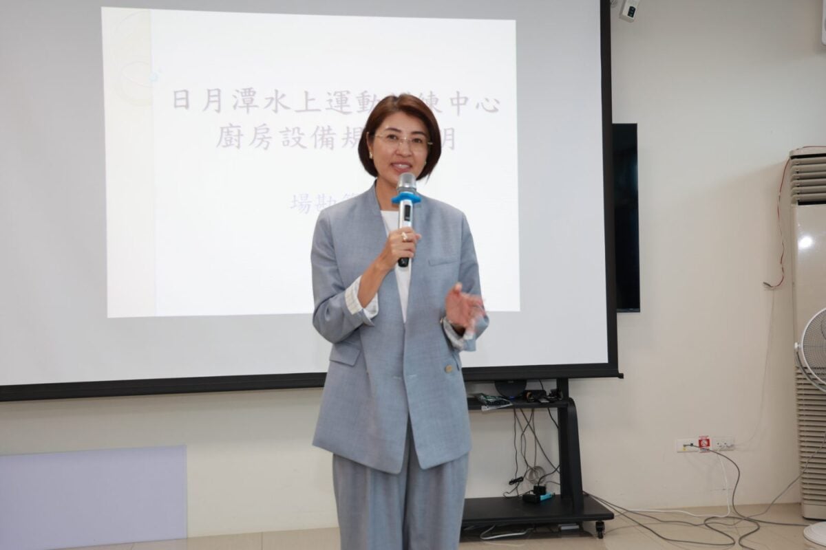 【記者謝雅情/南投 報導】 關心選手飲食需求。南投縣長許淑華21日前往日月潭水上運動訓練中心會勘,並指示縣府撥款約325萬元,在中心增設專業廚房設備,解決過去餐點需從水里長途運送或使用戶外臨時廚房的問題。許縣長由教育處長王淑玲陪同,到日月潭水訓中心,縣議員王
