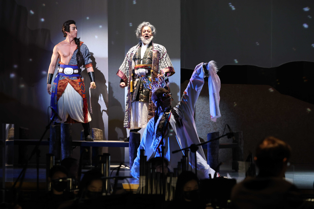 以英文為母語的黃大煒,挑戰歷史劇就像完成不可能的任務。劇團也特別邀請黃大煒親自設計「單于」的出場曲。黃大煒表示,短短的幾段音樂,卻跟創作一首完整流行樂一樣花時間!黃大煒甚至為了作曲學習烏克蘭語,「單于離世那首歌,跟團隊討論後,我們決定使用烏克蘭語『Love』、『Peace』、『Hello』、『Goodbye』、『Stop fighting』這幾個字來做。」劇團表示創作時期,烏俄戰爭剛開始,此段也有祈求世界和平的用意。編導謝念祖表示,全民大劇團的特色在於會把最新時事放進戲中,「歷史一定有與現代有連結之事,我們放進時事更貼近觀眾。」今天的彩排記者會,劇情也放入「發6000元給民眾」、「內閣是否總辭」,最火熱的時事。