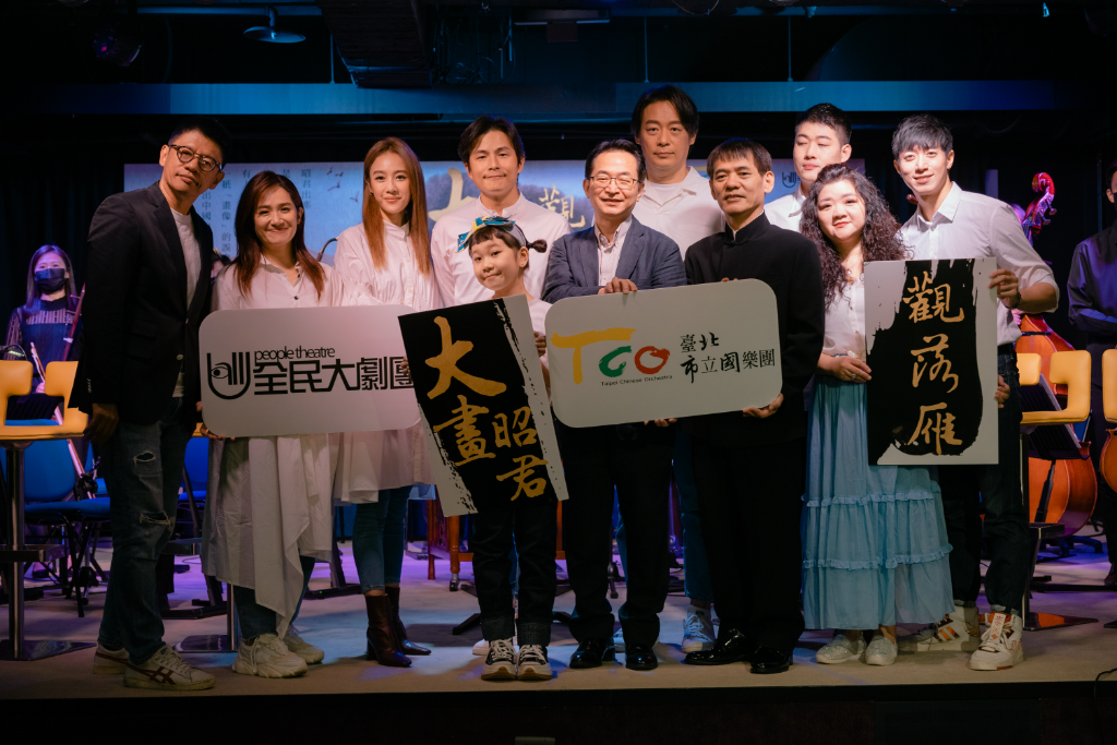 《大畫昭君~觀落雁》由指揮家吳瑞呈及北市國樂團,張大春作詞、謝念祖編導、李哲藝作曲;資深音樂人黃大煒、全方位演藝人員孫協志、歌手跨界演員方宥心、美聲唱將羅美玲,資深舞台劇演員周明宇、林斌、呂紹齊、小演員胖球同台演出。