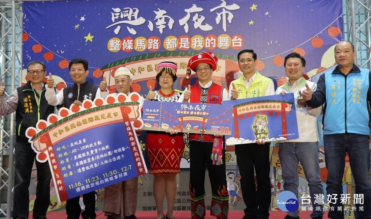 中和區長賴俊達說,興南夜市是中和區老字號商圈,雖然之前因為道路拓寬衝擊攤商生計,現藉由市府各局處共同輔導,期待能找回過去的榮景。歡迎大家一起來逛夜市,將馬路當成舞台,輕鬆享受興南夜市好吃、好玩、好看、好穿、好康的5夠好風情。