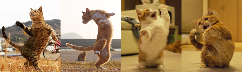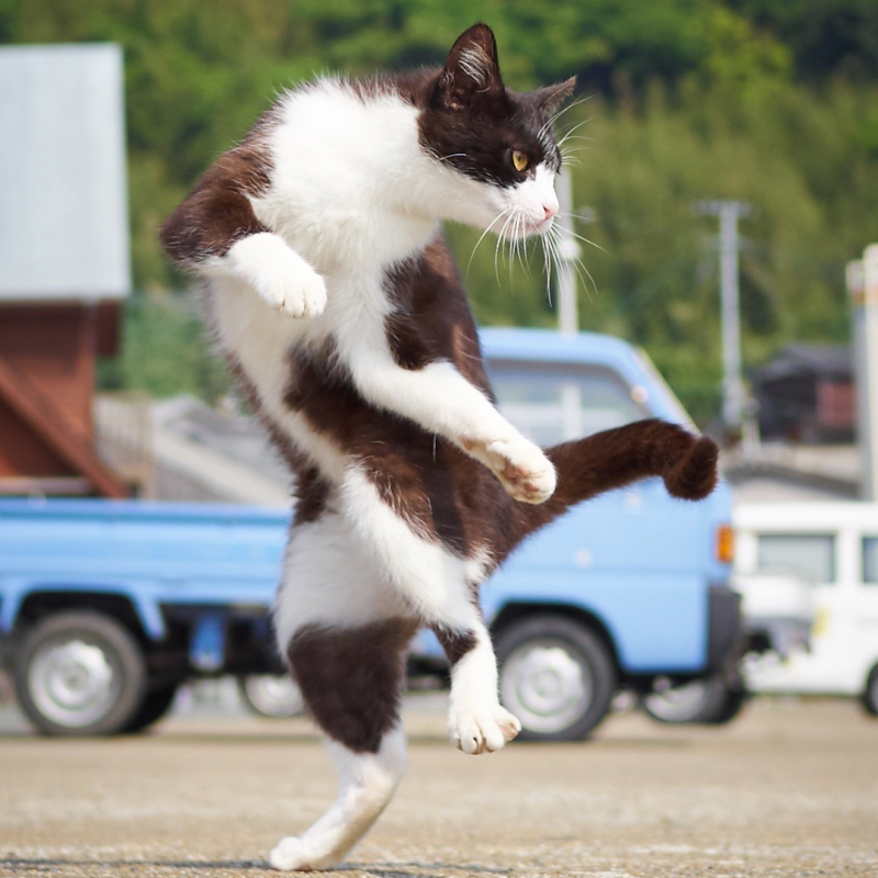 同樣來自日本的貓界忍者代表是在網紅攝影師@sakata_77照片底下的這些貓咪,牠們張大著手掌、緊盯著攻擊目標,奮力一跳,就成了照片裡的忍者貓。各種奇葩又有趣的姿勢,跟平常厭世懶懶的模樣相距甚遠,可說是有著強大的反差萌呢!