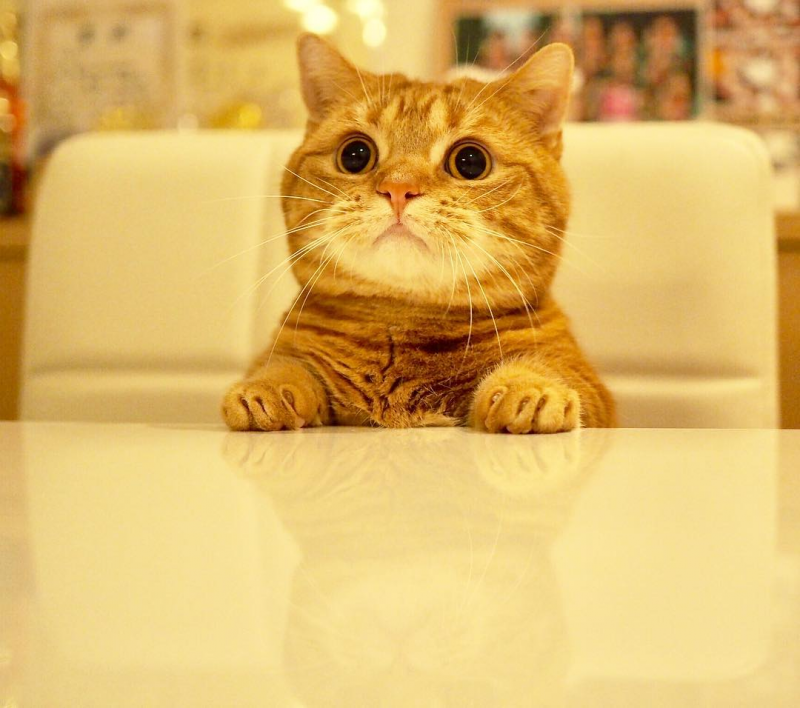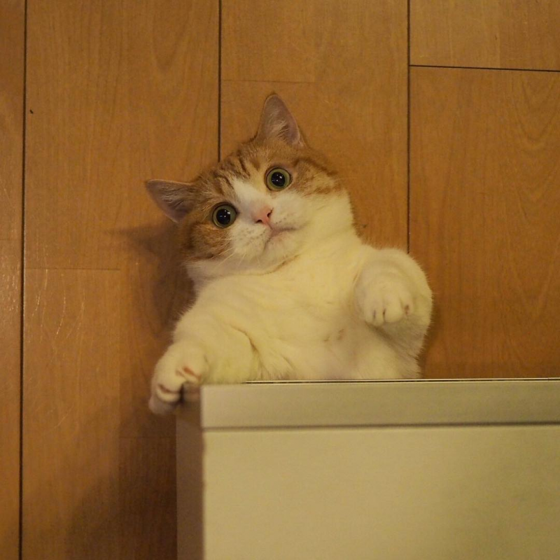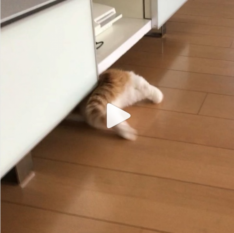 另外妹妹きなこ則是橘白相間的賓士貓,跟哥哥一樣有著大大的眼睛和短短的腿,但不一樣的是好動的性格,到處追趕跑跳碰的きなこ,還很喜歡鑽到櫃子底下,露出兩條肥肥短短的腿,真的是超級可愛!