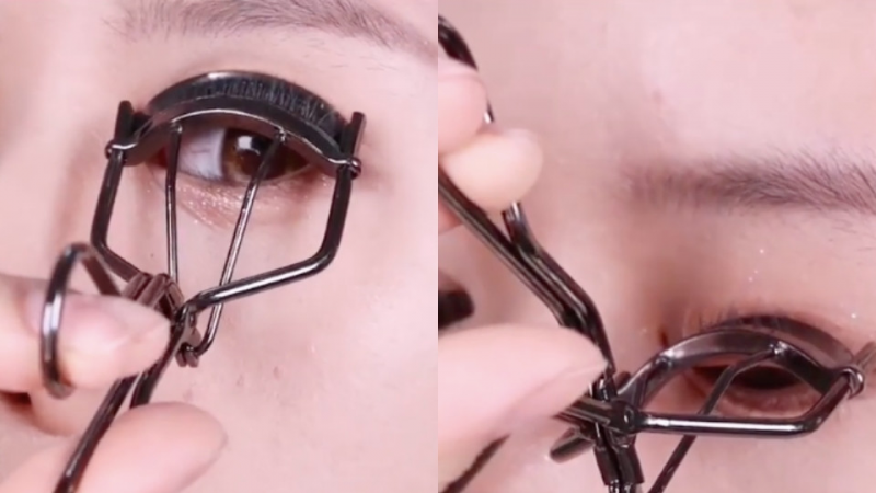 想要刷出炸開花的睫毛,「夾睫毛」就是關鍵,建議以輕夾輕放的手法分三段從睫毛根部將睫毛夾起,睫毛會呈現漂亮的弧度、而不是90度直角。