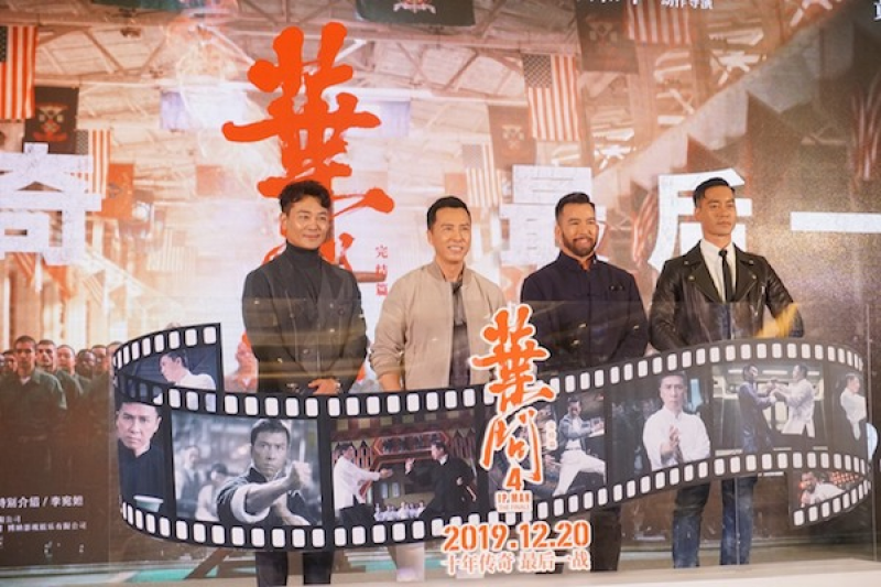 《葉問4:完結篇》日前在北京舉辦記者會,監製黃百鳴與甄子丹、吳樾、陳國坤及高戰(Chris Collins)現身造勢,讓全場MAN味十足。在《葉問》系列中飾演葉問和李小龍師徒的甄子丹和陳國坤按照中國傳統「武林規矩」,舉行了拜師禮,並「跨時空」再現葉問和李小龍師徒推手的經典瞬間。甄子丹說:「過去三集沒有空間讓導演編劇寫出兩師徒的關係,這次可以再深刻一點、正面一點去展示他們之間的緣份。」而陳國坤透露甄子丹戲裡戲外都讓人感受到一股俠氣,他說:「只要丹爺一到來,大家就彷如同葉問師傅真的來了而安靜下來,這就像是徒弟對師父的一種尊敬。」再扮李小龍,陳國坤表示有很不同的體驗,他說:「我本來不知道要拍攝截拳道的戲份,是到了現場才知道,但沒想到這場戲讓我人生第一次,也是唯一一次真的讓我感覺到打出一拳的感受。」由此可見擔任動作導演的袁和平八爺為塑造片中不同角色花了不少心思,以突顯各個角色。