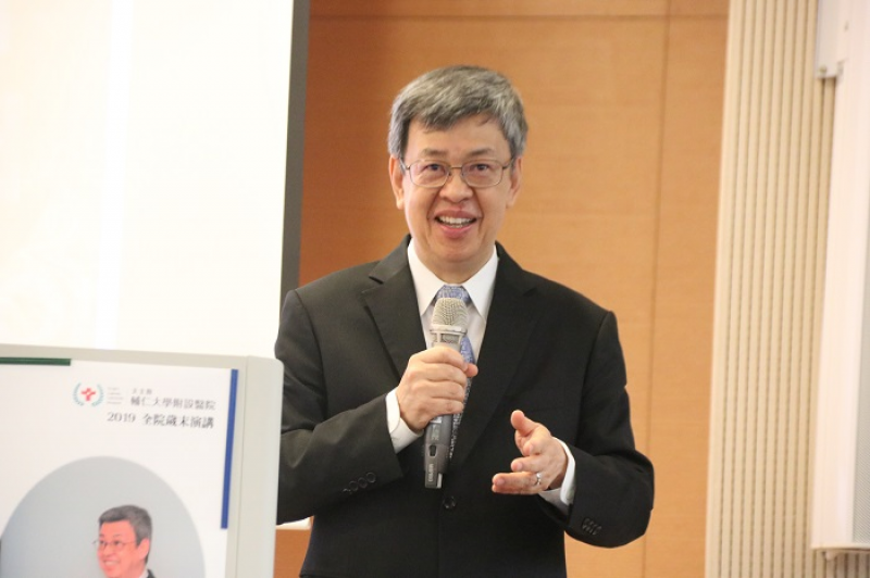 副總統陳建仁今天上午七時五十分到輔仁大學附設醫院演講,期勉醫護和行政同仁效法前輩精神,建立台灣好的醫療照護模式。