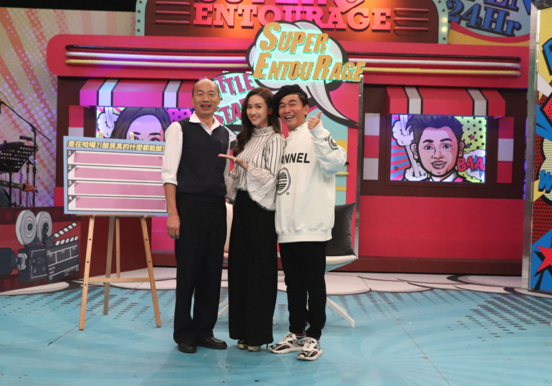 中天電視招牌綜藝節目《小明星大跟班》今(22)日邀請到國民黨總統候選人韓國瑜參與錄影,韓國瑜與主持人吳宗憲、Sandy吳姍儒一見面便熱情寒暄、握手話家常,綜藝天王遇上政治天王,憲哥也不改平時幽默性格,見到韓國瑜隻身前來,開口便搞笑說:「我是想來看韓冰的耶!」甚至為了看韓冰,竟然把寶貝女兒Sandy也拿出去交換!