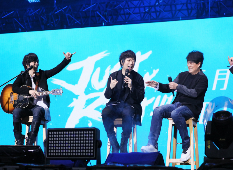 接著雙方掉進回憶漩渦,阿信憶起當年五月天剛發片時,周華健曾幫忙站台二次,「第一次是西門町大型演唱會,1999年請到的嘉賓就是華健哥,還有一次《神的孩子都在跳舞》在北京發片,又是請到華健哥!」讓周華健忍不住笑噴:「因為西門町住很近、北京是原本就有事,今天我也來桃園站台,見識一下,沒看過這麼大的場面。