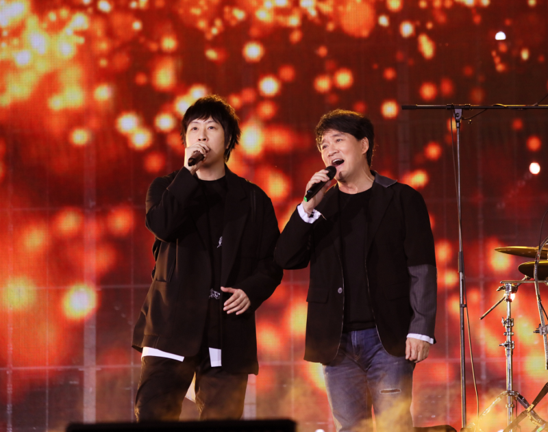 一首首經典讓台下跟著大聲合唱,周華健忍不住誇讚歌迷:「你們真的很棒,我為你們父母親感到驕傲。」阿信跟著附和假裝感概:「有一天我們也會跟台下說,跟你們的爸媽問好,這天快了!」接著團員們再唱一曲周華健的經典,還暗虧「這首歌跟鼓手冠佑的個性有關」,原來音樂一下,是金曲〈花心〉,而周華健35年來不變的好歌喉,也讓阿信忍不住稱讚他是「會走路的錄音帶」、「會走路的黑膠唱片」。