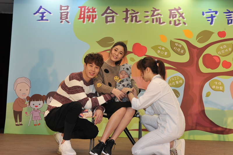 藝人白家綺今天(6日)帶著8個月的兒子「斗宅」於疾管署舉行「全員聯合抗流感