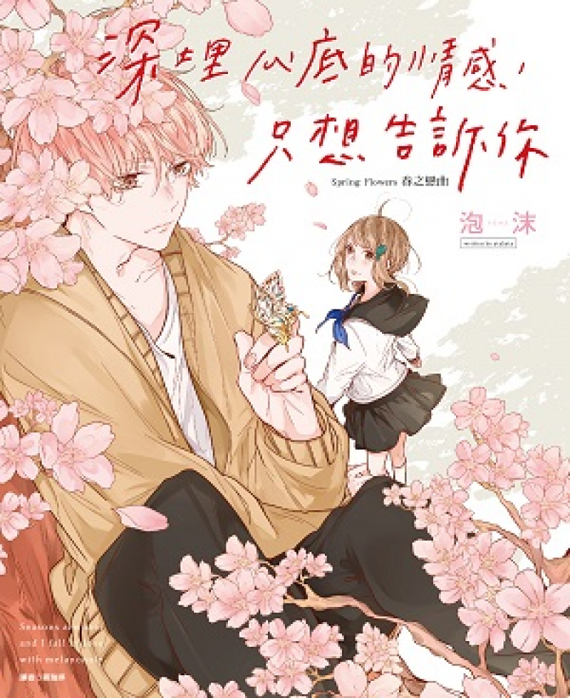 《深埋心底的情感,只想告訴你》是泡沫第一部長篇作品,描述少女與幻化成少年人型的櫻花樹精靈之間的故事。有著戀愛煩惱的少女,向表明自己是精靈的少年提出戀愛諮詢,精靈少年在相處的過程中對人類少女動了情愫,但櫻樹花開的季節卻也即將結束……不同於短篇作品的深情濃厚,本作喜劇般地拉開序幕,伴隨精靈少年的戀愛守則輕快推進劇情:會自作多情或會錯意就代表彼此距離的拉近、並不是所有戀情都會有結果不需過度強求、已經開始的戀情也並非永恆不變,各個對於愛情的箴言實用又傷感,彷彿少年訴著自己的情意。
