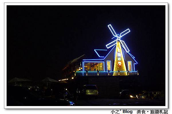 餐廳外觀有著風車造型,晚上看起來顯眼多了,比較不會難找