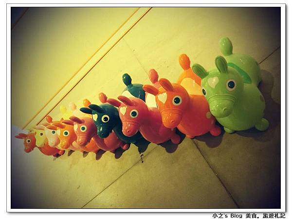 有各種顏色的跳跳馬♥ 小朋友看到整個就跨坐上去了,哈哈哈XD