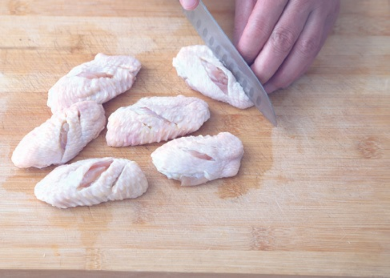 2 在雞翅上劃幾刀,擦乾水分。