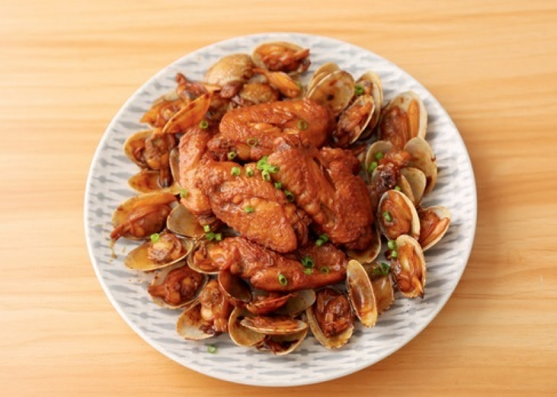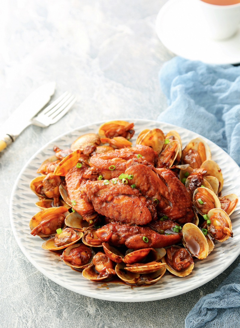 雞翅藉著蛤蜊的鮮、蛤蜊藉著雞翅的香,兩者相輔相成,無須過多食材就很好吃,是家常菜中常見的搭配。