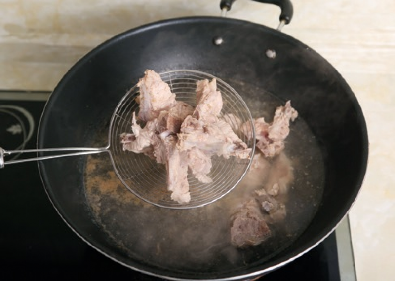 3 將豬脊骨放入清水中煮開,取出清洗乾淨。