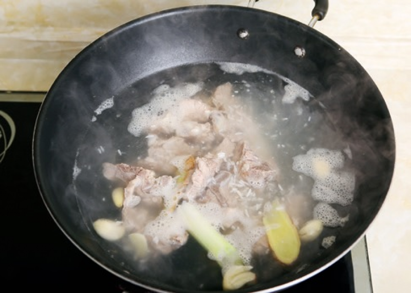 1 將豬脊骨剁成大塊,放入清水中浸泡2小時使血水滲出,清洗乾淨(中途換幾次清水)。