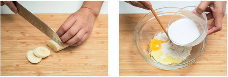 香蕉口感柔順、味道香甜,富含多種維生素和膳食纖維,能幫助腸胃蠕動和消化,促進身體的新陳代謝,裹在加了牛奶雞蛋的麵皮中,是一頓既好吃,營養又豐富的早餐。