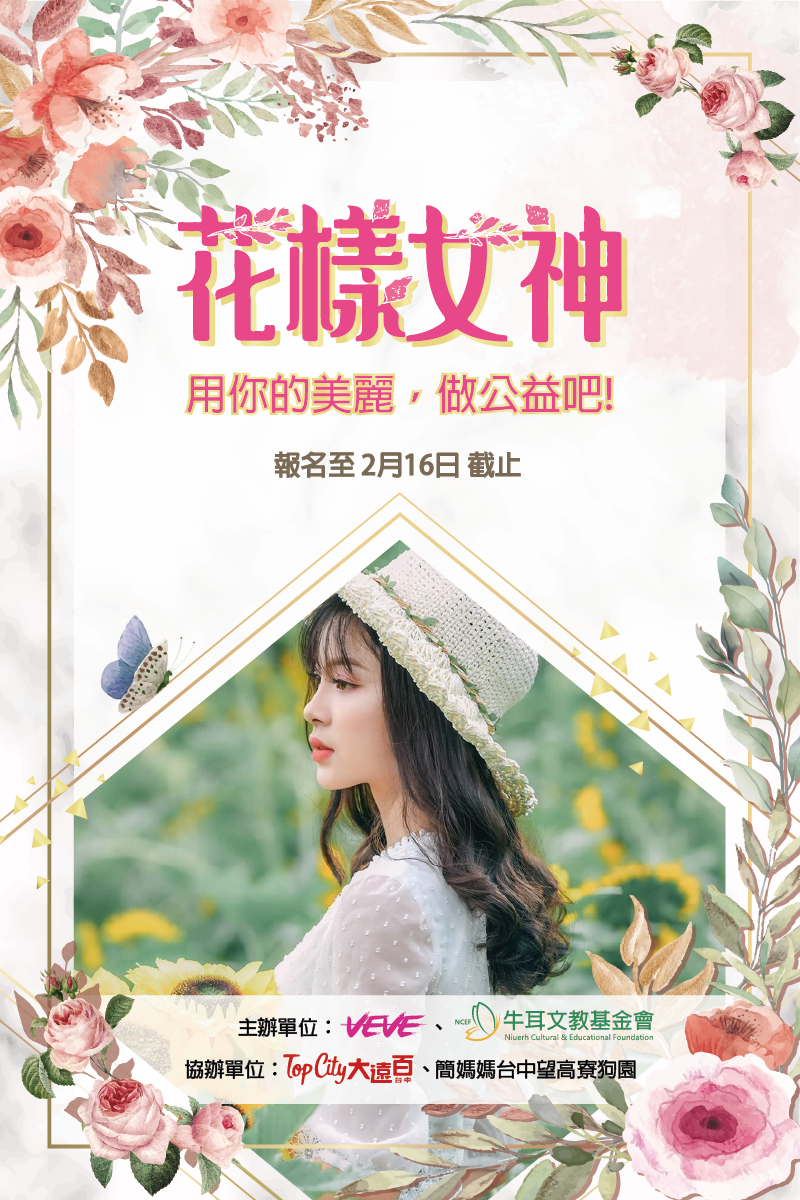 配合Top City台中大遠百於三月份的「遠百女神週」系列活動,牛耳文教基金會與亞洲選美社交平台VEVE聯合舉辦「花樣女神」公益選美競賽,邀請喜歡曬美照的網紅美女們參加比賽同時做公益,前五名得獎者還可獲新台幣4萬元的總獎金。