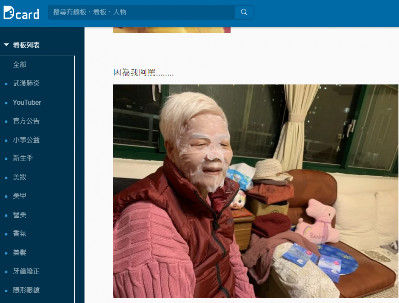 此文在網路論壇Dcard才一PO出,就引起底下網友熱烈討論,阿嬤名字剛好也叫「王美」,網友笑稱「阿嬤真的貨真價實網美一枚」、「標題:我的ㄨㄤˊㄇㄟˇ阿嬤」,更有眼尖的網友發現「那個包裝應該是專科面膜吧哈哈哈 阿罵好可愛~~」,沒想到連網美阿嬤都風靡於網路論壇。