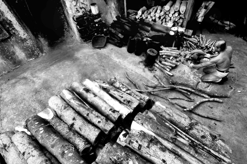 植物組成的基本元素「碳元素、氫、氧」,經過高溫淬鍊保留其碳元素,而溫度的高低與製作過程,決定木炭品質的好壞。若木材質地差或炭化過程沒有完整,燃燒時容易產生白煙、爆裂與火星彈跳,所以窯主堅持只使用台灣本土的相思木與龍眼木。