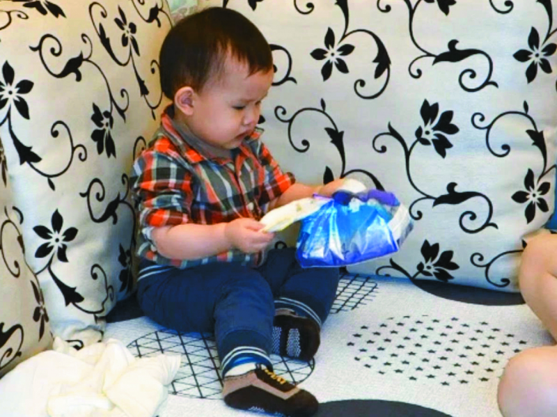 - 活動方式:將布或手帕折疊放入濕紙巾袋,提供孩子抽取。