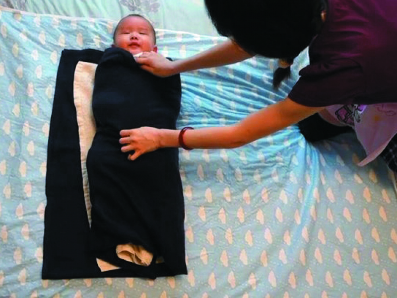 - 較大的孩子,可讓他拉著毯子自己翻滾捲起。
