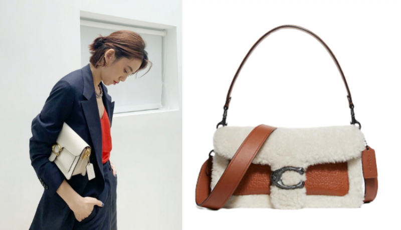 Coach創意總監Stuart Vevers以1970 年代經典包款為原型,重新翻玩的Tabby 26肩揹包,運用標誌性 C 字母金屬配件作為按釦設計,搭配羊毛或皮革拼接細節,一共推出方正型與長方型兩種尺寸,若想在本季擁有一個正港腋下包,就請指名陳庭妮身上這咖長方款,穿上西裝再將包包夾在腋下,復古長方型包身會稍稍露出來,讓整體造型更顯率性。