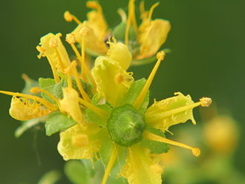 ✽ 聖賀德佳:芸香具有適度的熱性,和少許的溫性,一般用法是輾成粉末,與食物一同攝取,生食效果更佳;吃壞胃腸時,以一份芸香、兩份鼠尾草的比例,加鹽調味服用,可見療效。