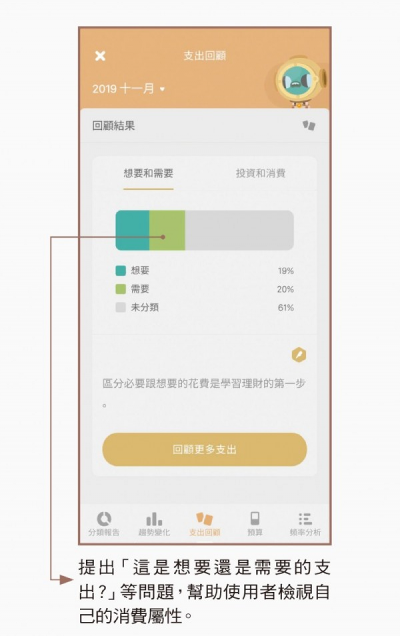 再者,記帳的挑戰不在於開始記錄,而在於能否持續記錄。有些開發商為鼓勵用戶每天開啟 App,結合「遊戲化」設計,建立獎勵與集點機制,以及設計趣味的介面,促進使用者養成規律的記帳習慣。
