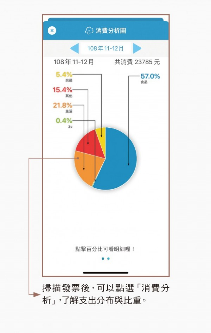 拿到紙本發票時,可以透過「連續掃描」發票上的 QR Code 和「手動輸入」兩種方式把發票存入「雲端發票」App,並透過內建的「消費分析」功能,讓使用者明白這個月收入是花在生活用品比較多,還是外食吃得太豐盛。