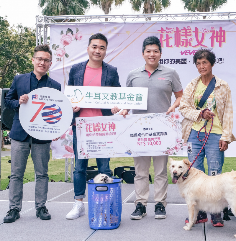 牛耳文教基金會與台灣社交軟體新創團隊VEVE於3月8日婦女節時,在台中大遠百時尚廣場舉行「花樣女神」公益見面會活動。活動旨在協助流浪狗找尋一個可靠的家,並透過VEVE平台上的高人氣女神們招攬人流,呼籲領養代替購買,給毛小孩一個更適宜的生長環境。