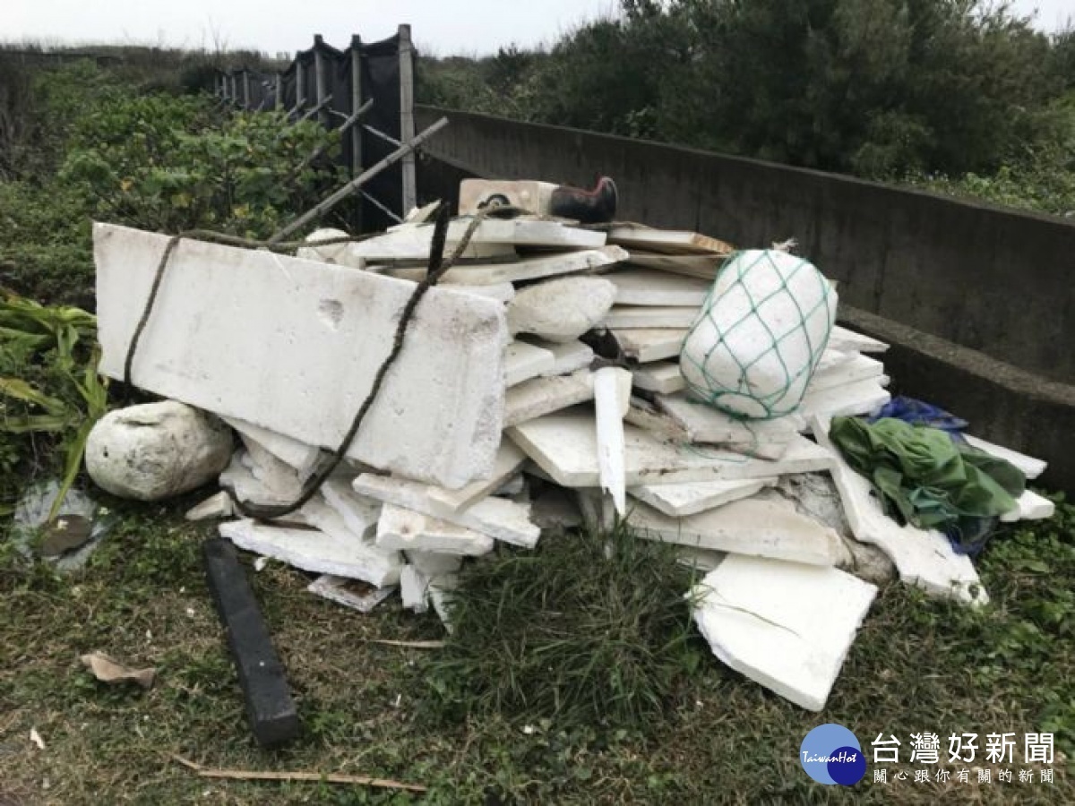 環保局於14日上午接獲陳情,位於大園區沙崙里的「豬鼻子沙灘」遭棄置漁業廢棄物,環保局、海管處及大園區環境清潔稽查中隊聯手合作並花2小時完成清理,並由竹圍派出所循線追查行為人,後續將依法處分。