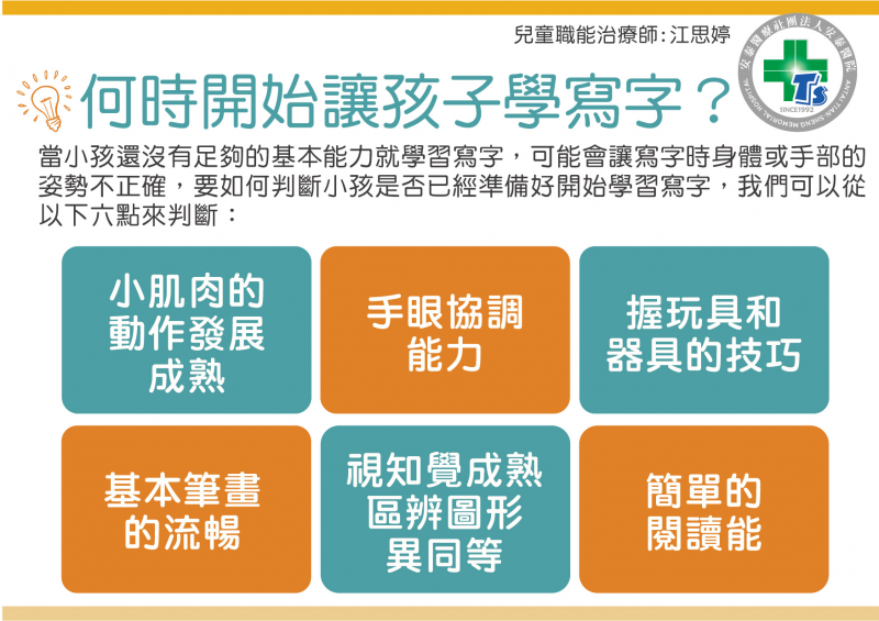 每個小朋友學習經驗及發展成熟度與興趣皆不同諾是家長或老師過於急促,讓他們太早進入書寫活動的話會造成小朋友在面對書寫會造成很大挫折感,建議是讓小朋友在學齡前可以,快樂的跟自然的情景去練習一些紙筆的活動讓小朋友,對書寫或塗鴉感到有興趣。