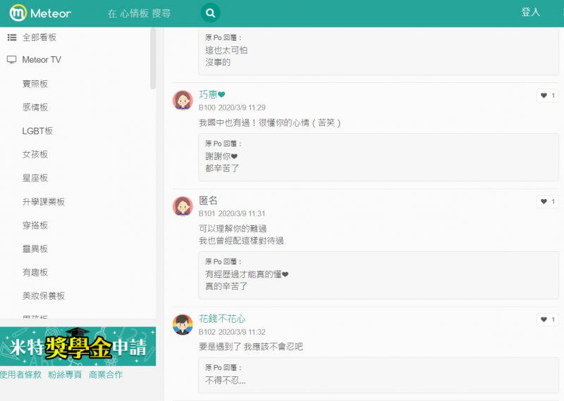 (學生留言畫面。圖片來源:Meteor)