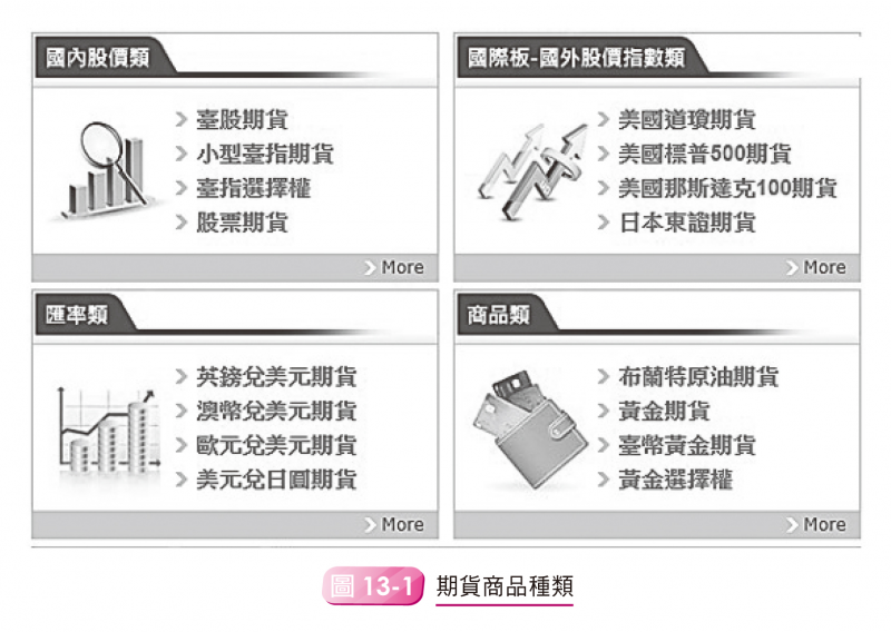 目前台灣期貨公司上市的期貨商品大概有以下四類: