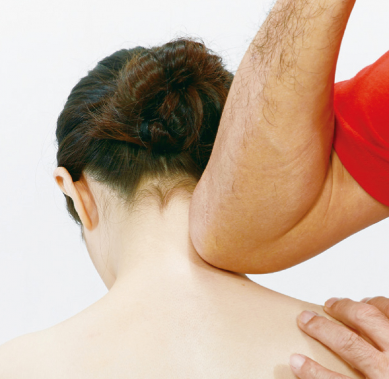 圖說:以手肘施作的力道較強,須留意施力大小,以免造成反效果。